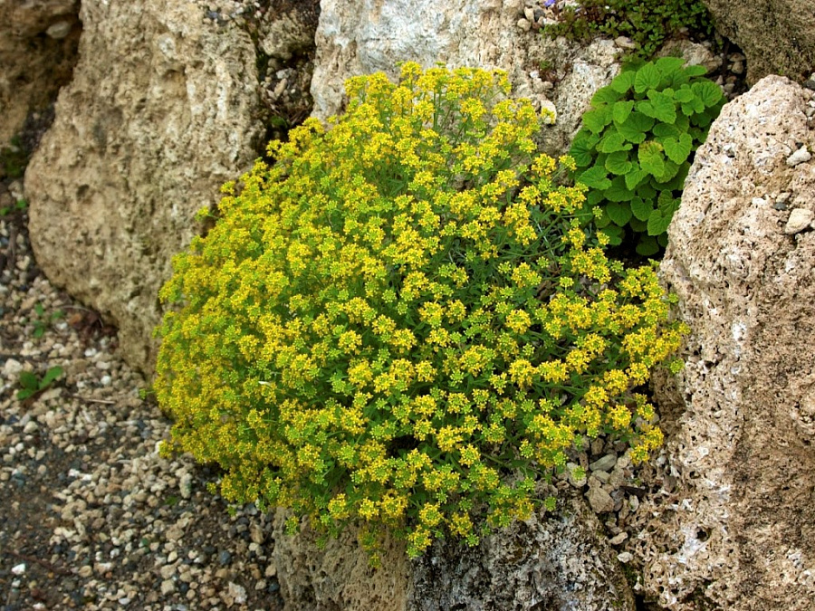 Это растение имеет компактные размеры, что позволяет легко разместить его в любом уголке сада. Листья алиссума горного маленькие и овальные, создавая эффект легкости и воздушности.