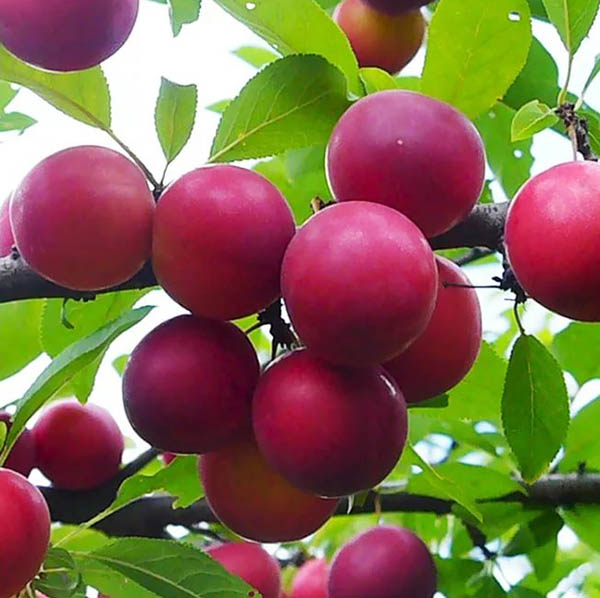 Подрастая, крупномеры алычи превращаются в среднерослые деревья с пышной раскидистой кроной. Этому сорту присуща хорошая засухоустойчивость. Посадив саженцы алычи, вы сможете собирать карминно-красные плоды среднего размера, подходящие для приготовления компотов, варений и прочих заготовок. Ягоды также можно употреблять в пищу в свежем виде.