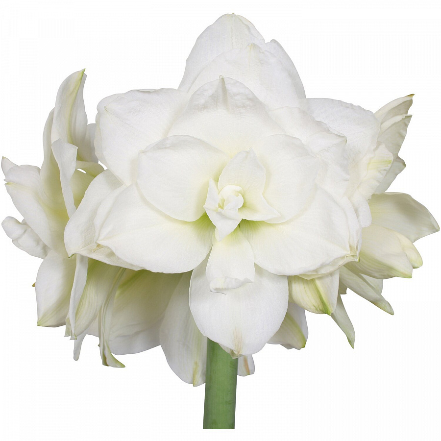 Амариллис махровый Акико - это великолепное растение, которое поразит вас своей красотой и изысканностью. Его стебель достигает высоты 50-70 см, а цветок имеет диаметр 10 см. Цветок белоснежный с блестящим напылением в центре зеленого цвета, что придает ему особую изысканность. Листья зеленые, форма листьев элегантная и изящная.