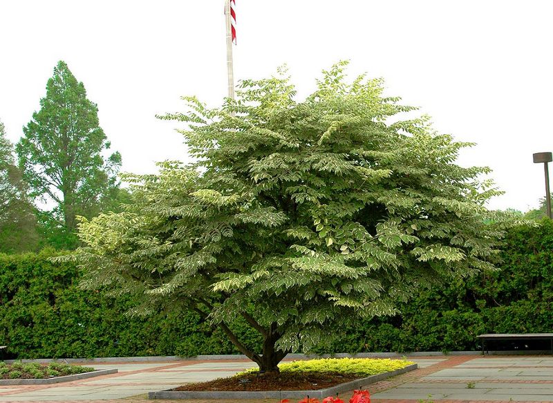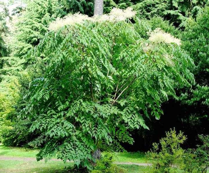 Саженцы Аралии высокой (Aralia elata) – быстрорастущее лиственное дерево или кустарник высотой до 3 м. Форма кроны и крупная сложно-перистая листва напоминает тропические культуры. Поэтому растение интересно и необычно смотрится в любых древесных композициях, а также как самостоятельное украшение садов и парковых зон. Окраска листвы Aralia elata зеленая. В период цветения, которое приходится на июнь, дерево покрывается соцветиями мелких белых цветов со слабым приятным ароматом. В первые 5-6 лет после посадки культура не цветет. Ветвистая система развивается только при повреждениях ствола. Чаще аралия высокая растет прямо.