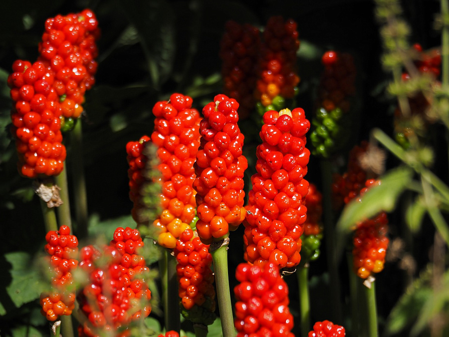 Рассада Аронника итальянского Arum Іtalicum (Арум Италикум) хорошо растет в солнечном и тенистом месте. Из семян весной появляются листья, а затем соцветия. В августе растение дозревает. Ягоды Аронника итальянского ядовиты. Особенности ухода: 1. Поливать нужно часто, если Аронника итальянская растет в солнечном месте (не реже 2-3 раз в неделю); 2. Не требует чрезмерной влажности в тени; 3. Высаживать лучше на западной и восточной стороне; 4. Дополнительные удобрения не требуются, хватает удобрений из почвы; 5. Сильные морозы растение не переносит, поэтому зимой его нужно накрыть.