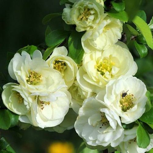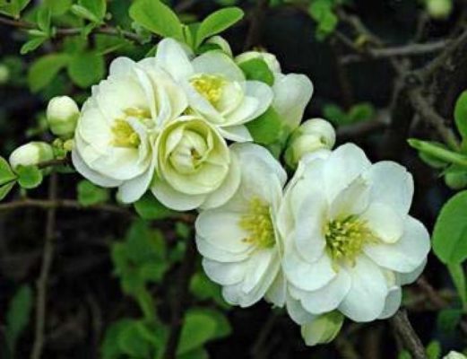 Саженцы айвы (хеномелеса) превосходной Yukigoten используют не только для получения вкусных и полезных плодов. Во время цветения кустарники приобретают потрясающий вид. Цветы диаметром 3-5 см, собраны в соцветия, которые размещаются по всей длине побега. Окрашены они в яркий красно-оранжевый оттенок. Плодоношение начинается через 3-4 года после посадки саженцев айвы превосходной Yukigoten. Урожай созревает в конце сентября — октябре. Плоды диаметром от 3 до 5 см отличаются грушевидную или яблокообразную форму. В зрелом виде их окраска варьируется от зелено-желтой до ярко-оранжевой.