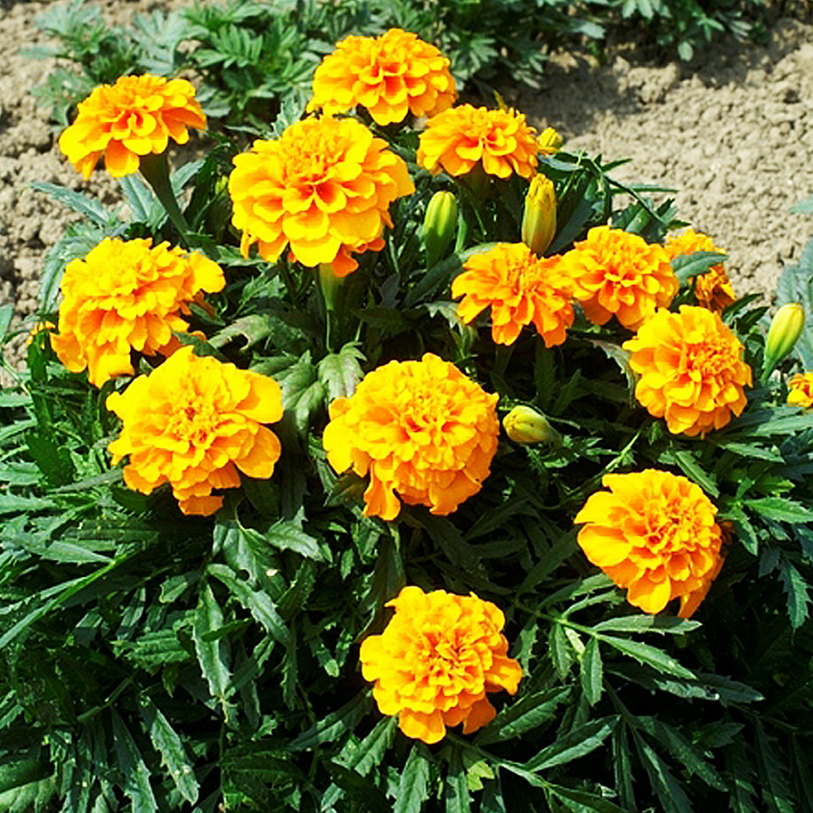 Бархатцы отклоненные чика голд - это удивительное растение с желтыми цветками, которые радуют глаз своей красотой. Сорт chica gold поражает своей изящностью и неповторимым шармом. Высота этого растения может достигать 15-20 см, что делает его идеальным выбором для групповых посадок. Листья бархатцев отклоненных чика голд имеют особую форму и текстуру, придающие растению уникальный вид.
