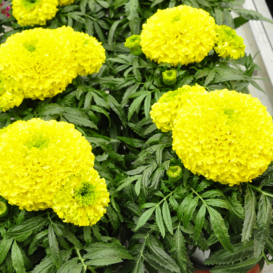 Бархатцы прямостоячие антигуа еллоу - это великолепное растение с желтыми цветками, которое порадует вас своей красотой и изяществом. Сорт antigua yellow отличается высотой до 30 см и диаметром цветка до 10 см, что делает его идеальным выбором для украшения вашего сада или огорода. Листья бархатцев имеют прямую форму, создавая элегантный вид растения.