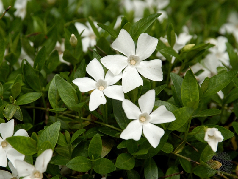 Рассада барвинка «Альба» (Alba) хорошо разрастается в любых условиях, как при ярком солнце, так и в полностью затененных местах. К почве растение также не требовательно, но лучше всего растет в плодородном и рыхлом грунте. Рассада барвинка «Альба» используется для создания рокариев, клуб и создания лужаек в парках и скверах. Веточки могут достигать в длину до 60 см. Они плотно покрыты продолговатыми листочками темно-зеленого цвета. Листики сохраняют цвет круглый год. Растение, выращенное из семян барвинка «Альба», зацветают в мае. Цветение продолжается на протяжении месяца. Цветочки имеют белый цвет.