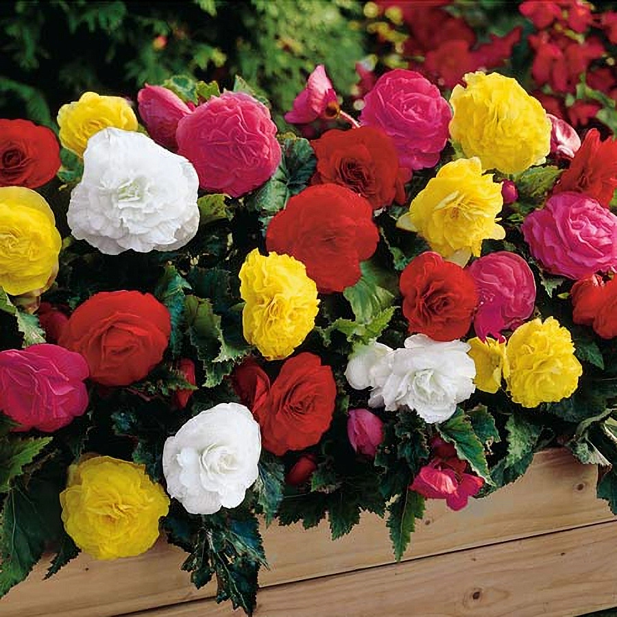 Бегония махровая смесь окрасок - это великолепное растение, которое поразит вас своей красотой и изысканностью. Ее пышные цветы желтых, красных, белых и оранжевых оттенков до 20 см в диаметре напоминают настоящие произведения искусства. Листья зеленого цвета создают прекрасный контраст с яркими цветами, делая растение еще более привлекательным.