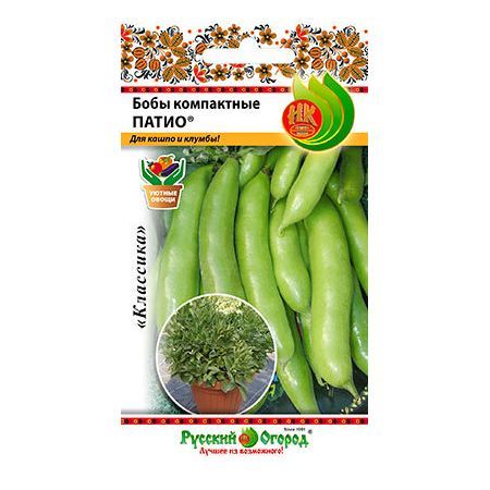 Семена бобов "Компактные Патио" подходят для выращивания в кадках и кашпо. Кустики в высоту достигают максимум 40 см. Они быстро наращивают стебли и формируют завязь, которая созревает за 7 недель от момента посадки. Бобы прекрасно держатся в кучке, не давая провиснуть стеблям под тяжестью урожая. Крупные зеленые семена бобов "Компактные Патио" сразу по 8 штук в стручке отличаются приятным вкусом. Их собирают молочной спелости. Пригодны для употребления в свежем виде, для приготовления блюд и в консервации.