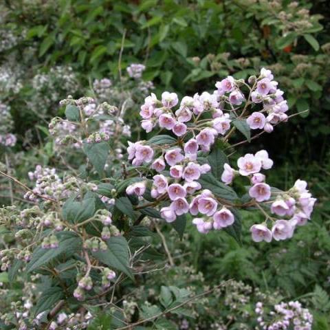 Саженцы Дейции компакта Лавендер Тайм (Lavender Time, Deutzia compacta) – привлекательный карликового лиственный кустарник, у которого душистые цветы. Вырастает в высоту и ширину 80-100 сантиметров. Период цветения идет с конца весны до середины лета. Цветы с приятным запахом, имеют окрас от сиреневого до бледно-розового и похожи на флоксы.
