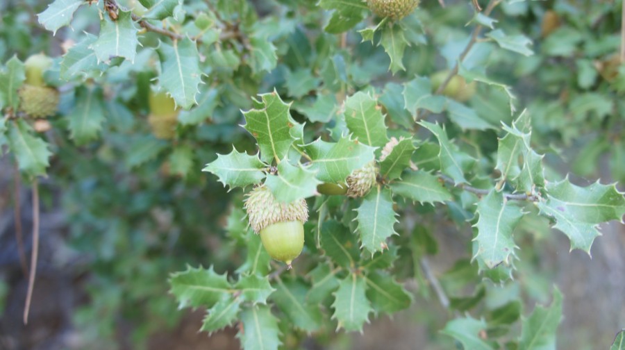 Плоды в виде желудей обильно покрывают огромную крону дерева. Появляться летом и продолжительное время висят на ветвях.