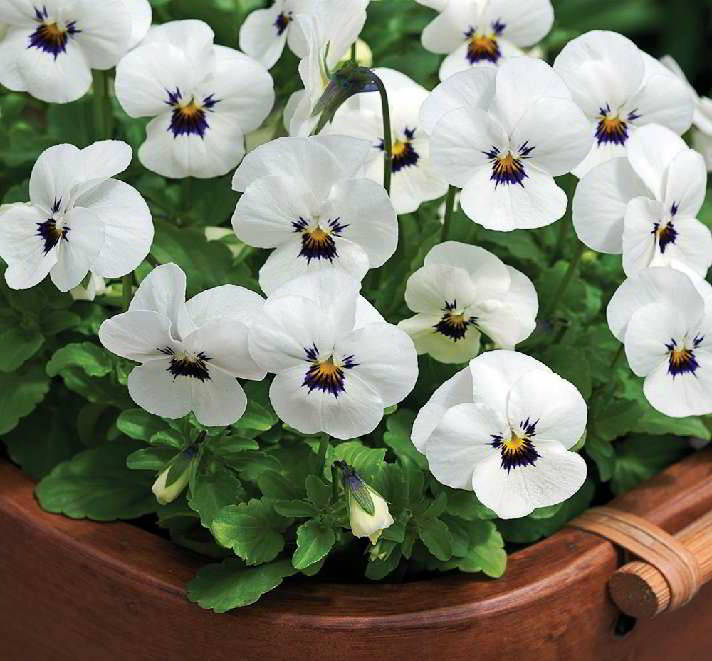Фиалка рогатая "Совершенство Белая" - это настоящее воплощение изысканности и красоты в мире растений. Ее стебель, достигающий высоты до 15 см, украшен нежными белыми цветками, которые расцветают в начале весны и летом. Листья этого растения имеют форму сердца и создают уютный альпинарий или миксбордер в вашем саду.