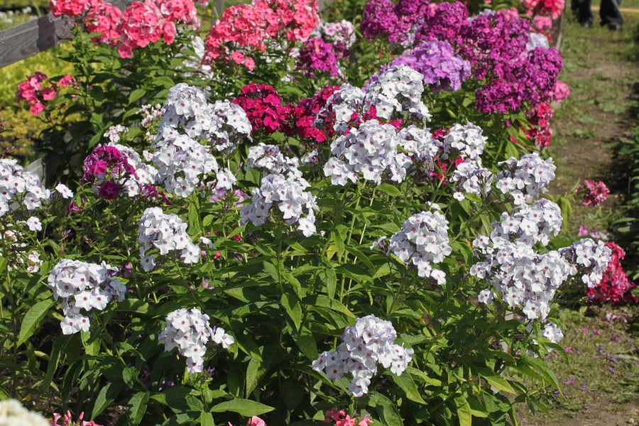 Рассада флокса метельчатого Чайка понравится любителям нежных соцветий. В летний период на кустах появляется множество белых цветов с фиолетовой серединкой, лепестки которых покрыты легкой голубоватой дымкой. Этот сорт универсален в использовании и подходит для составления праздничных букетов.