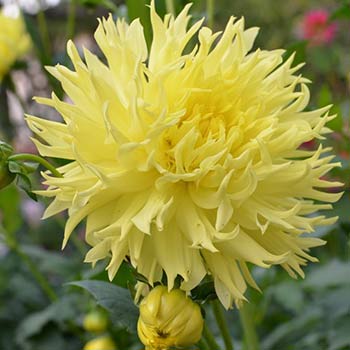 Рассада георгины бахромчатой Промис (Dahlia Laciniated Promise) нужна любому цветущему саду. Ярко-желтые пушистые перистые цветки диметром до 15 см без аромата и не нуждающиеся в сложном уходе принесут радость любой хозяйке. На контрасте с обильной темно-зеленой массой листьев они говорят о самой нежности и хрупкости. Несмотря на внешнее впечатление, растение очень крепкое, вырастающее до 100 см в высоту и устойчивое к ветреным местам. Необходимым условием для обильного цветения будет наличие солнца и свободного пространства. Хорошо смотрятся в смешанных посадках, идеальны для срезки под украшение помещений.