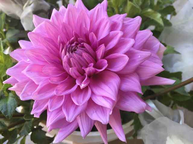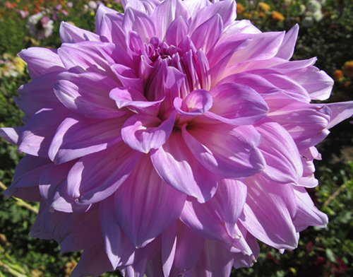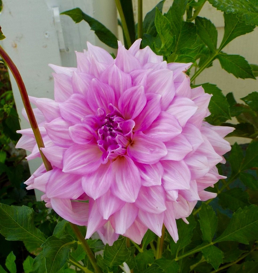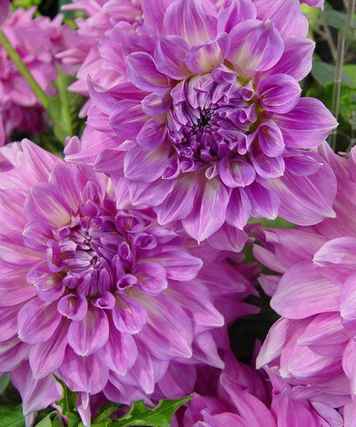 Рассада георгины декоративной Алмандз Джой (Dahlia decor Almand Joy) понравится любителям очень крупных цветов. Растение высотой до 120 см цветет с июля по октябрь и радует глаз необычными нежными шарообразными цветами. Диаметр каждого цветка до 25 см, середина чисто-белая, а концы лепестков нежно-сиреневые. Цветы чем-то напоминают кремовые украшения на торте, в комплекте с темной зеленью производят неизгладимое впечатление. Они предпочитают хорошо освещенные и защищенные от ветра места, так как столь крупные цветки при сильном ветре достаточно тяжело удержать. Идеальны в смешанных посадках и срезанных букетах для помещений, не имеют запаха.