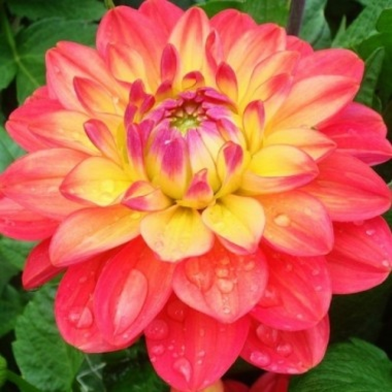 Окраска цветка : кораллово-розовый, кончики лепестков сиреневые, центр - желтый