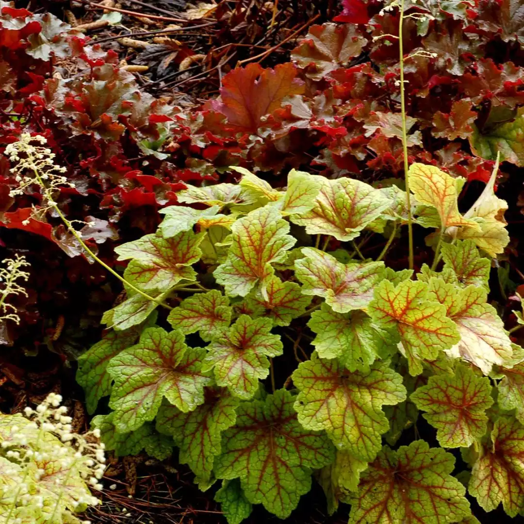 Рассада гейхеры Электрик Лайм (Electric Lime) идеально подходит для дополнения смешанных посадок, украшения искусственных водоемов и каменных горок. В начале сезона листья имеют нежную лаймовую окраску, а к осени на поверхности проступают красные прожилки, повышая декоративность растения. В середине лета появляются цветоносы с белыми соцветиями-метелками.