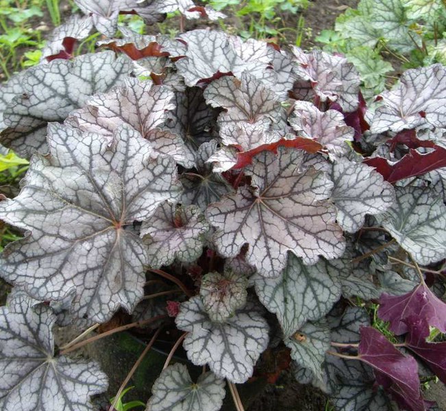 Саженцы гейхеры гибридной Cascade Down используют в одиночных посадках, смешанных либо групповых цветниках. Растение нетребовательно, но предпочитает легкие, хорошо удобренные почвы и тенистые места. Высота кустиков достигает до 35-40 см, а ширина — 45 см. Листочки сначала имеют малиново-пурпурный оттенок, а затем становятся темно-зелеными с серебристым налетом и пурпурными тонами. Цветки розоватые, собраны в соцветия высотой 30 см. Период цветения длится с июня до июля. Гейхера гибридная Cascade Down хорошо смотрится с весенними цветочками, на берегу водоема, рядом с хостами и другими культурами.