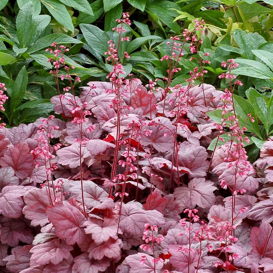 Рассада гейхеры Грейп Соуде (Grape Soda) наполнит яркими красками смешанные посадки. Этот сорт отличается от других насыщенной розово-фиолетовой расцветкой, которая будет заметна издали на фоне зеленых растений. Во второй половине лета розетка выпускает цветоносы с красивыми розовыми соцветиями, которые будут вас радовать до сентября. Неприхотливая рассада гейхеры Грейп Соуде (Grape Soda) не требует сложного ухода, поэтому подходит даже начинающим садоводам. Поливать растение нужно не чаще, чем раз в два дня. Увеличить число поливов можно лишь во время сильной засухи. Избыток влаги может стать причиной развития серой гнили, мучнистой росы и других заболеваний.