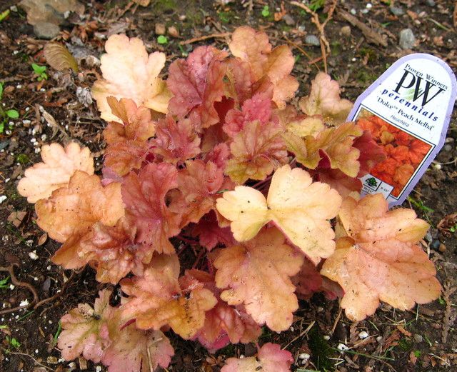 Красивую рассаду гейхеры Пич Мельба (Peach Melba) могут смело покупать даже начинающие садоводы. Этот многолетник не нуждается в сложном уходе. Его нужно поливать по мере высыхания земли. Мульчирование места посадки поможет предотвратить появление сорняков.