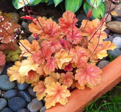 Рассада гейхеры Пич Мельба (Peach Melba) обладает высокими декоративными качествами, благодаря которым нашла широкое применение в ландшафтном дизайне. Резные листья, похожие на кленовые, на протяжении сезона меняют окраску с желто-горчичной до всевозможных оттенков багряных тонов. В начале лета появляются длинные цветоносы с мелкими белыми соцветиями.