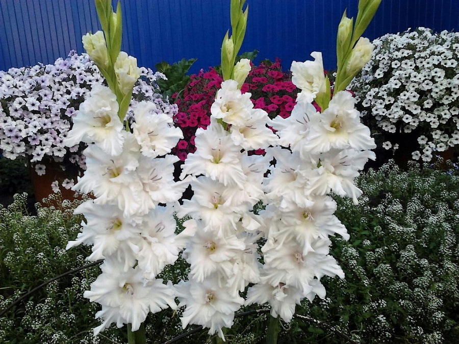 Луковицы Гладиолуса гибридного Санкарре (Sancerre) выпускают высокие цветоносы до 100 сантиметров, на которых в июле распускаются огромные цветки белой окраски. Листья вертикальные, линейные, не ветвящиеся. Цветущее растение выглядит строго и элегантно. Семенной материал высаживают в легкие плодородные почвы на расстояние 15 сантиметров друг от друга. Место подбирают открытое, защищенное от сквозняков и ветра. Клубнелуковицы в открытом грунте зимовать не оставляют. Гладиолус Санкарре можно выращивать в контейнере и горшках. Этот сорт пригоден для срезки и составления монобукетов.