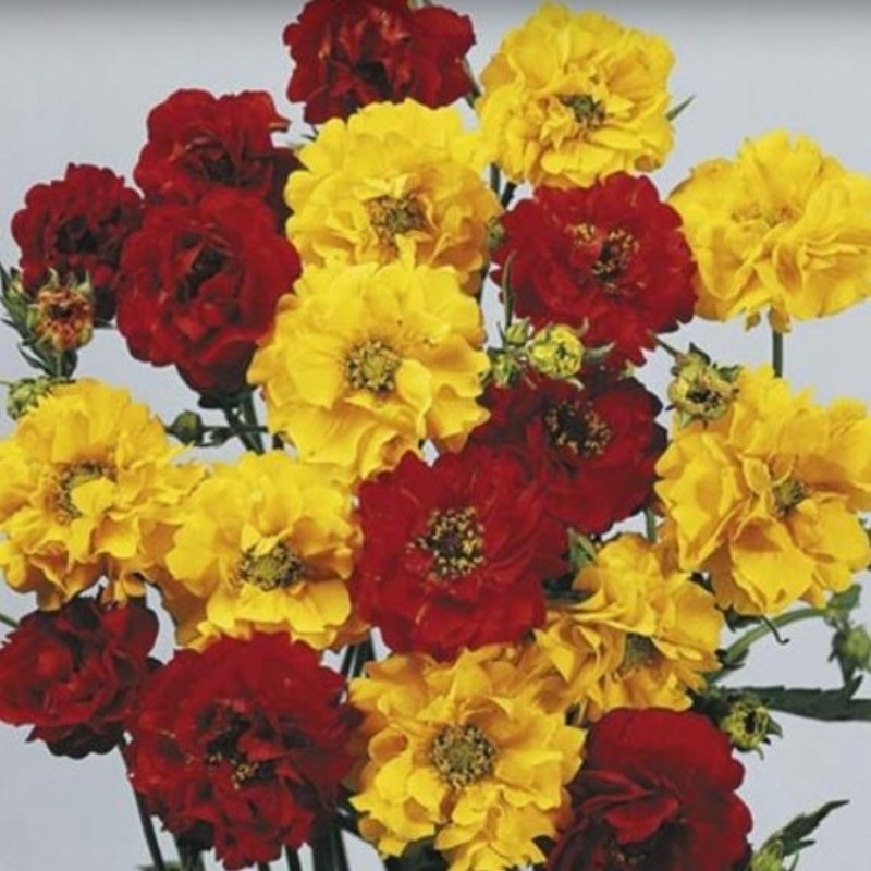 Семена гравилата чилийского подарят замечательную возможность оживить садовый ландшафт с помощью ярких миниатюрных цветов. На мощном корневище растения появляются прямые полуметровые стебли, увенчанные полумахровыми цветами красной или желтой расцветки.