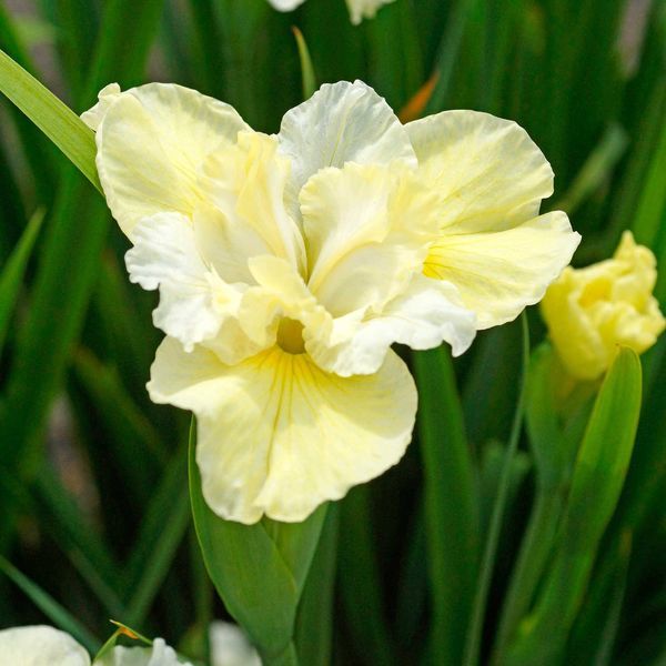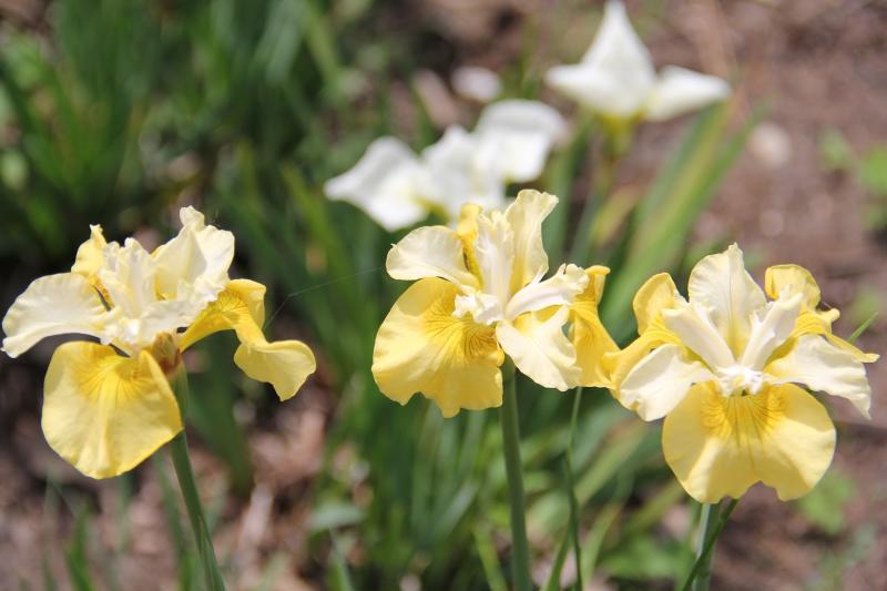 Саженцы сибирского ириса Йеллоу Тейл (Iris sibirica Yellow Tail) привлекательны для цветоводов неприхотливостью в выращивании. Все, что им необходимо, – умеренный полив, полутень, периодическое внесение удобрений, хотя можно обойтись и без них. Линейные темно-зеленые листья сохраняют декоративность до самых заморозков, оставаясь в форме компактного кустика. Цветок крупный, до 14 см в диаметре. Первые бутоны распускаются в мае. Цветение длится и в июне. Стандарты белые со светло-желтыми полосами. Фолы лимонные, более насыщенные в центре и светлее по краям. Высота цветоносов около 75 см.