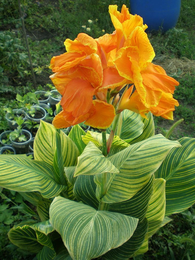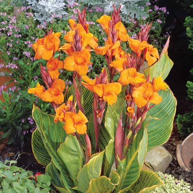 Канна пёстролистная претория - это удивительное растение с яркими оранжевыми цветками, которые расцветают в мае. Ее высота может достигать до 90 см, что делает ее идеальным выбором для групповых или одиночных посадок. Листья канны имеют желто-зеленую окраску с зеленым штрихом, что придает растению особый шарм в любое время года.