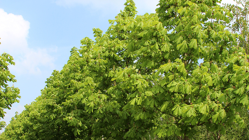 Саженцы конского каштана Баумани (Baumannii) - посадочный материал отличного сорта деревьев. Каштан – одно из замечательных растений, украшающих наши парки и сады. Дерево очень крупное (достигает 25 метров), крона компактная (до 10 метров). У каштана красивые ярко зеленые цветочки. После распускания листьев цветет в апреле - мае прекрасными белыми махровыми цветочками в конусовидной метелке довольно долгое время, источая сильный приятный аромат. Плодов крупномер Баумани не дает. Для посадки дерева нужны: