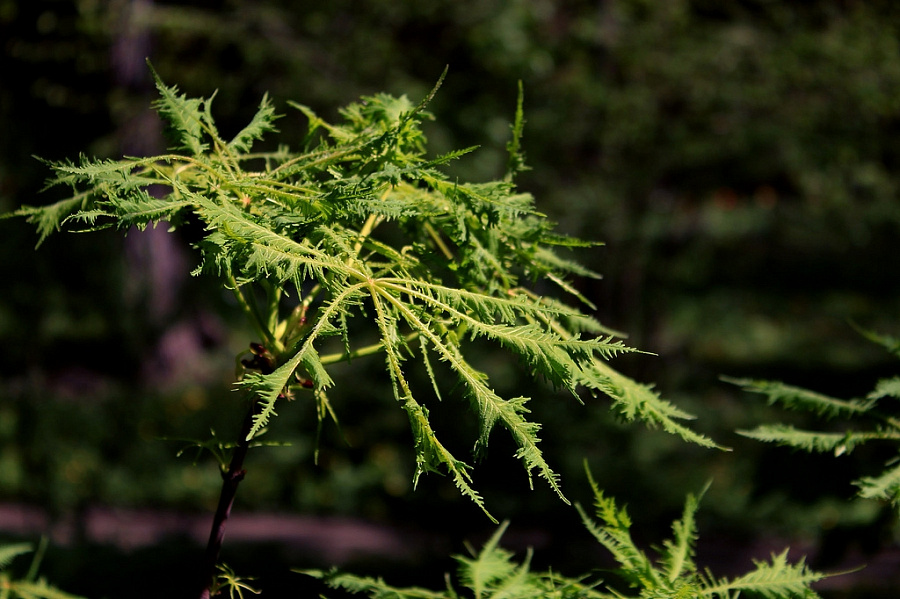 Саженцы Каштана конского Лациниата на штамбе (Laciniata) представлены в виде компактного кустарника высотой около 3 метров, с ажурной кроной из-за того, что листья похожи на изящных паучков. Данный вид каштана практически не цветет, поэтому именно необычные листья придают ему декоративности.