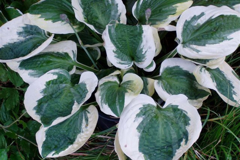 Хоста сорта Barbarra Ann (Барбарра Энн) – декоративное растение, отличающееся большим раскидистым кустарником высотой 60 – 70 см. Листья его крупные и немного вытянутые зелено-серо-голубого красивого оттенка с широкой каймой белого цвета. Цветки практически белые и появляются в июле, они нежные и имеют форму колокольчиков. Кроме того, цветы возвышаются над кустом из-за высоких цветоносов. Кустарник хорошо чувствует себя в полутени или в тени, у него невысокая скорость роста. В середине июля во время массового цветения растение производит потрясающее впечатление на окружающих. Сорт Барбарра Энн не просто декоративный, он хорошо переносит холода и требует минимального ухода.