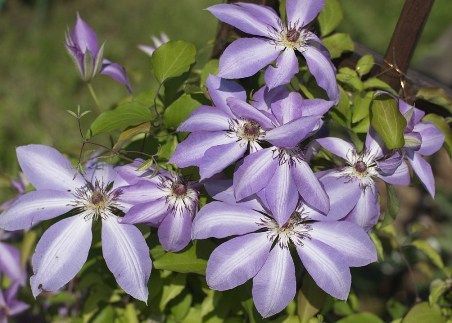 Клематис гибридный Серафина (Serafina) ценится садоводами за красивый внешний вид, продолжительное цветение и морозостойкость. Цветки светлые, имеют фиолетово-розовую окраску с белой полосой в центре лепестка, в диаметре достигают 20-22 см. Цветет обильно с мая по июнь, зацветает повторно в августе сентябре, после удаления завядших цветков. Растение вьющееся, длина побегов достигает 250-300 см, рекомендуется выращивать рядом с опорами. Саженцы клематиса гибридного Серафина (Serafina) используют для озеленения садовых участков, лоджий, балконов и террас.контейнерах.