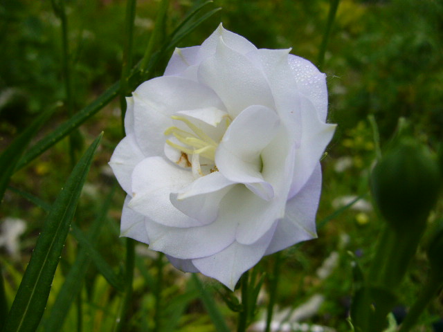 Колокольчик персиколистный ла бон ами - это изысканное растение с белыми колокольчиками, которые напоминают нежные персики. Его стебель прочный и прямой, достигает высоты до 60 см, что делает его идеальным для создания красивых цветочных композиций в саду или на клумбе. Листья данного растения имеют форму персика, что добавляет ему особый шарм и уникальность.