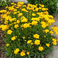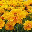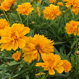 Рассада кореопсиса Эрли Санрайз (Early Sunrise) имеет крупные листья, верхние имеют перисто-рассеченную форму, а нижние имеют цельную форму. Цветет с июля до конца августа. Цветы крупные, шаровидной формы. Цветение золотисто-желтого, ближе к центру цветочка становиться темно-вишневого, махрового цвета. Вырастает в высоту около 40-60 см. Плюсы кореопсиса Эрли Санрайз: