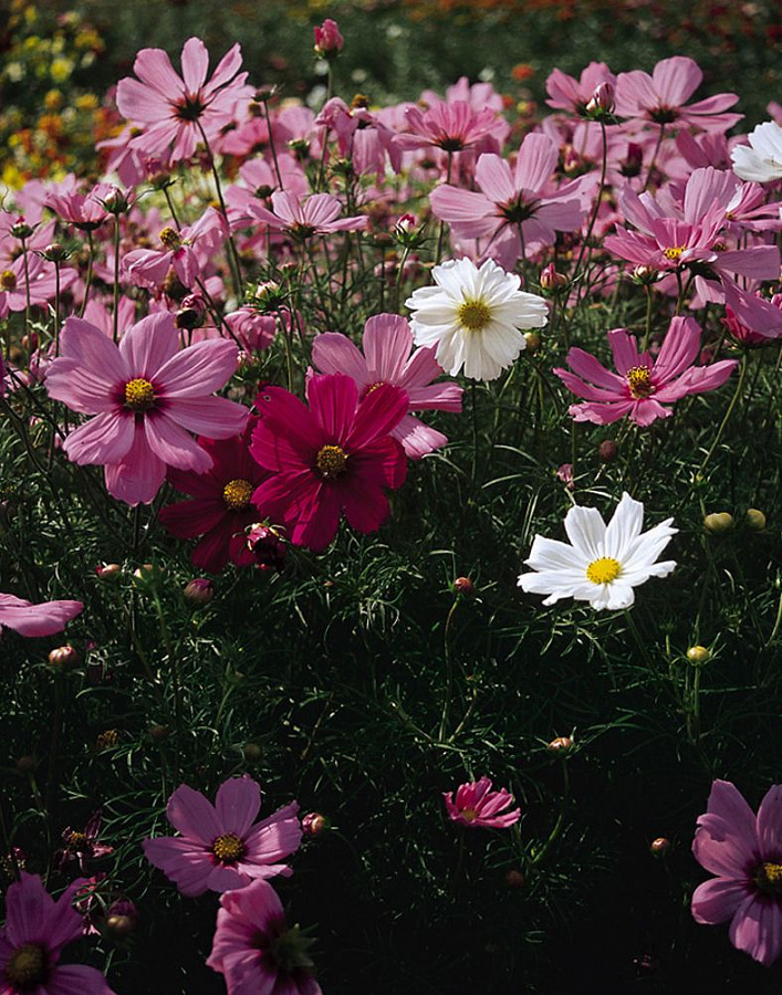 Космея дварф сенсейшн микс - это настоящее воплощение красоты и изящества в вашем саду. Ее стебельки, достигающие высоты до 50 см, украшены нежными цветами белого, розового и карминного оттенков, создавая неповторимый вид. Листья этого растения имеют форму стрелы и придают ему особый шарм.