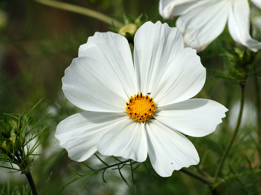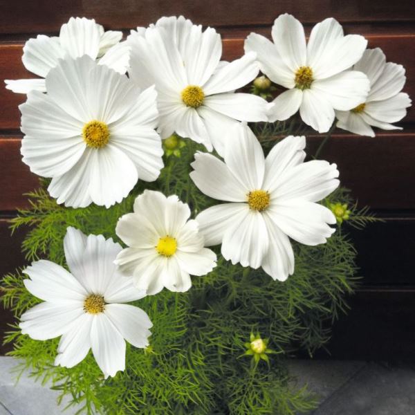 Космея Сенсация Белая - это великолепное растение с изысканными белыми цветками, которые будут радовать ваш взор в течение нескольких месяцев весной и летом. Ее стебли прочные и прямостоящие, достигают высоты до 90 см, а диаметр цветков составляет 7-10 см. Листья космеи имеют интересную форму и добавляют декоративности этому растению.