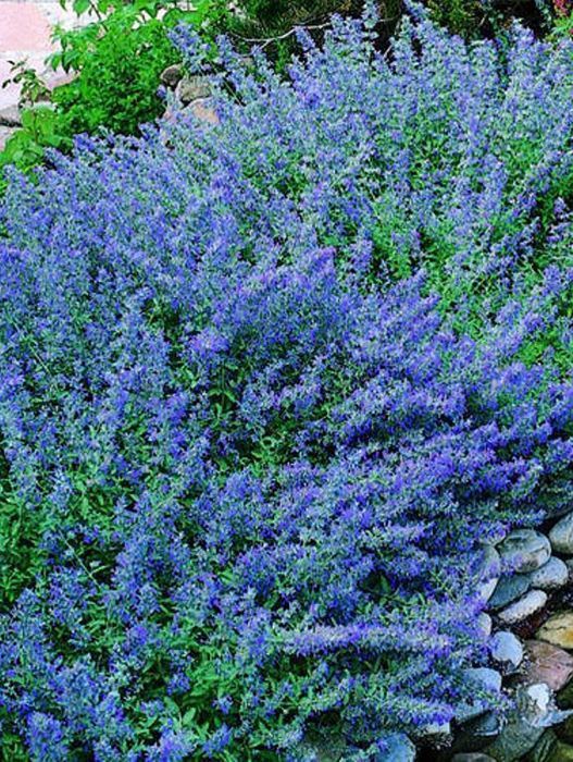 Саженцы котовника Фассена Light blue лучше всего развиваются и обильно цветут на солнце. Но растения переносят и легкую полутень. Сорт устойчив к засухе, даже в особенно жаркие сезоны полив нужен умеренный. Высота многолетника небольшая, примерно 20-30 см. Опушенные стебли скрываются под широкими зелеными листьями. Обильное цветение наблюдается с июня до сентября. Цветочки собираются в колосовидные соцветия сиренево-голубого цвета. На протяжении всего цветения от них исходит яркий мятный аромат. Саженцы котовника Фассена Light blue чаще всего применяют в смешанных цветниках и для бордюров.