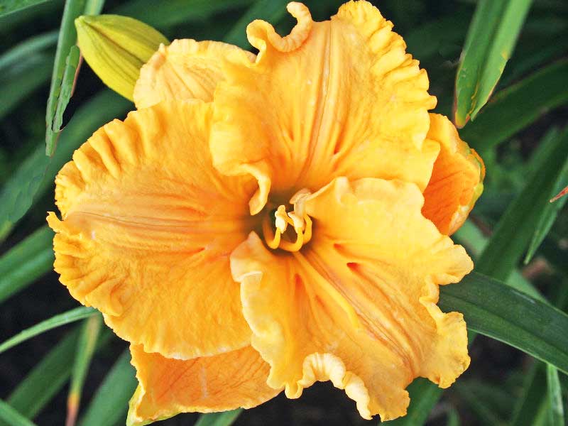 Лилейник Бас Релиф (Bas Relief)- многолетнее растение прекрасное по своим декоративным качествам. В период с июня по август формирует золотистые цветы с зеленым горлом. Лепестки гофрированные, скульптурные по центру имеют рельеф в виде пера. Лилейник хорошо зимует под снегом, не требуя дополнительного укрытия. Для посадки выбираем хорошо освещаемые солнцем места. Застоев воды растение не переносит, особенно в холодное время года.