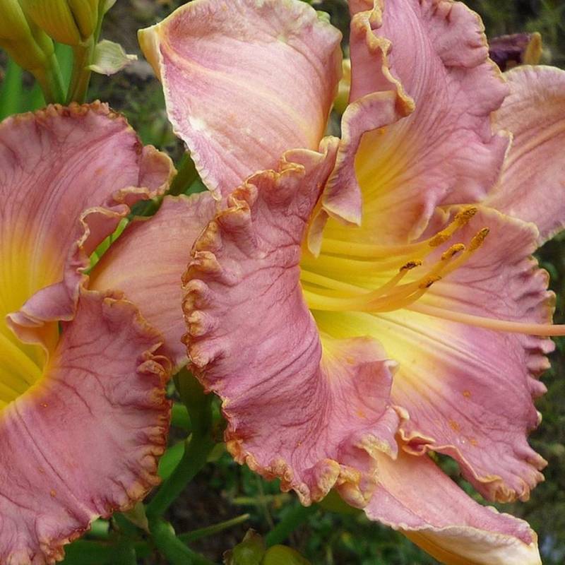 Рассада Френч Линджери (French Lingerie) – великолепный лилейник, цветы которого непременно станут ярким акцентом в любом саду. Они яркие розовые с желто-серебристыми краями на лепестках, серебристой сердцевиной и лимонным горлом, которое ещё больше подчеркивает уникальность цветка. Диаметр цветка 15 см. Может зацветать повторно в начале осени, а первое цветение приходятся на июнь – июль. Общая высота взрослого растения 60 – 70 см. Благодаря сочетанию оттенков сорт остается всегда востребованным, а главное простым в уходе. Если лето очень теплое, то лилейник распустится намного раньше, но при этом сократится и срок цветения, поэтому на него отводят в среднем от 35 до 65 дней.