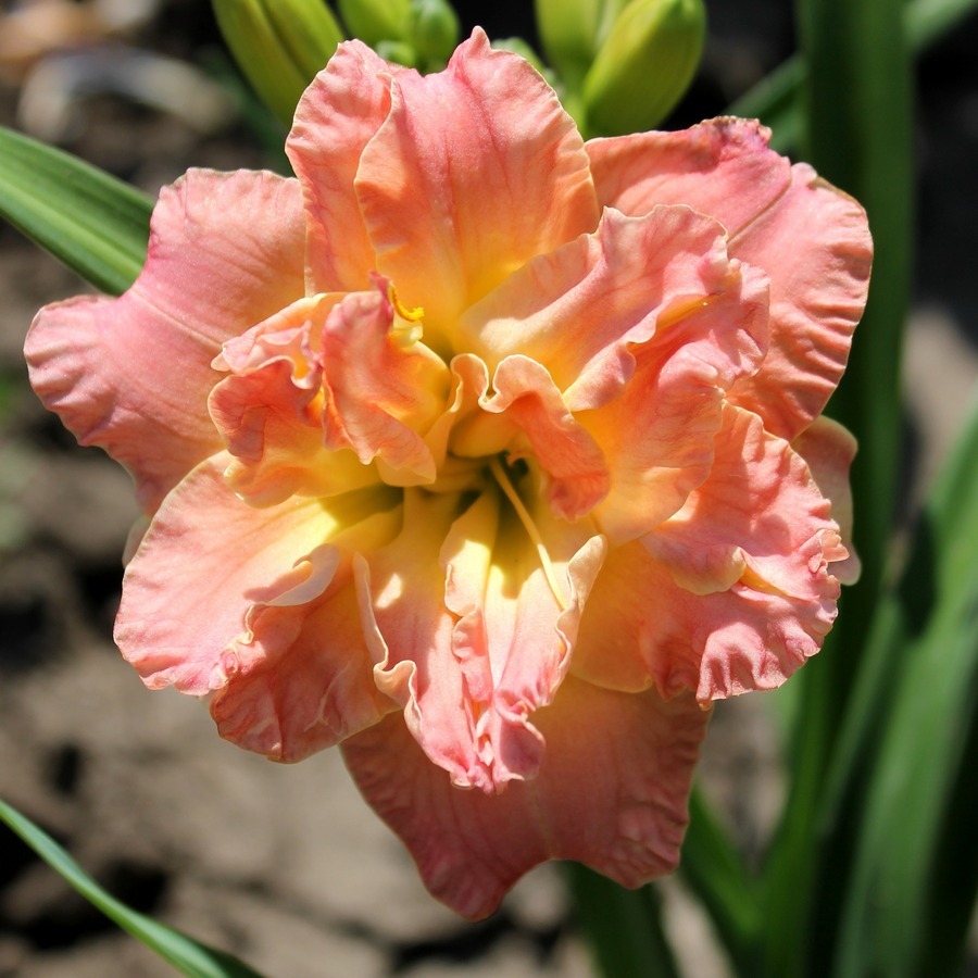Рассада лилейника Конго Корэл (Congo Coral) не требует сложных манипуляций для осуществления ухода. Полив проводится только при сильной жаре и засухе. Обильное распускание цветов происходит при полноценном солнечном освещении. Цветок лилейника абрикосового цвета с зеленым горлышком и красной сердцевиной. Он махровый по своей текстуре и источает приятный аромат. Основное цветение начинается в середине июля, а при хорошей погоде в начале сентября происходит повторное цветение, но уже не столь обильное. Рассада отлично будет смотреться в дополнении к любым садовым и парковым ландшафтам. Также цветы сочетаются  с другими однолетними и многолетними растениями.