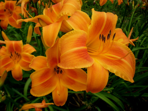 Рассада лилейника "Рокет Сити" (Rocket City) пользуется большой популярностью у садоводов. Многолетник неприхотлив к условиям роста и уходу. Одинаково хорошо осмотрится в групповых и одиночных посадках. Период цветения - июль, август. Ярко-оранжевые лепестки с бордово-оранжевым горлом и продольными полосками более темного оттенка располагаются двумя ярусами. По краям легкая гофрированная кайма по краям. Высота цветоносов - 85 см. Сорт рассады лилейника "Рокет Сити" морозостойкий и не требует укрытия на зиму.