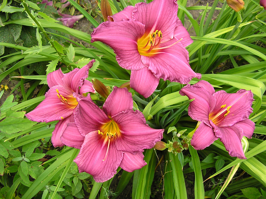 Рассада лилейника Саммэ Вайн (Summer Wine) – это травянистый многолетник, который формирует рыхлый кустарник из больших розеток. Листья этого лилейника расположены вертикально, они длинные ярко-зеленые, а по краям понижаются. Зелень сохраняется вплоть до самых морозов. Цвести Саммэ Вайн начинает в начале августа. На нем появляется яркий цветок розово-фиолетового цвета с желтоватой сердцевиной и размером 14 см в диаметре. При хорошей погоде может начаться повторное цветение в сентябре. Используют эту рассаду с целью озеленения и украшения газонов, высаживая группами с добавлением других растений. Цветы отлично смотрятся по берегам водоемов или вблизи камней в альпийских горках.
