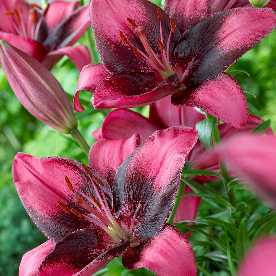 Лилия азиатская танго пёпл дрим - это волшебное растение, которое поразит вас своей красотой и изысканностью. Ее ствол прочный и устойчивый, достигает высоты до 95 см, а цветки радуют глаз своей ярко-розовой окраской с густым темно-бордовым крапом. Листья лилии имеют форму, напоминающую сердце, что добавляет этому растению особый шарм.