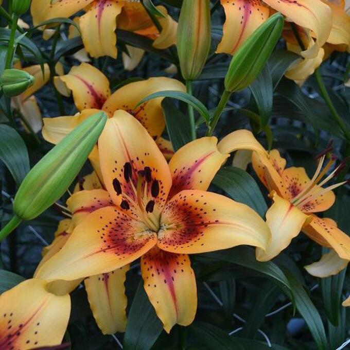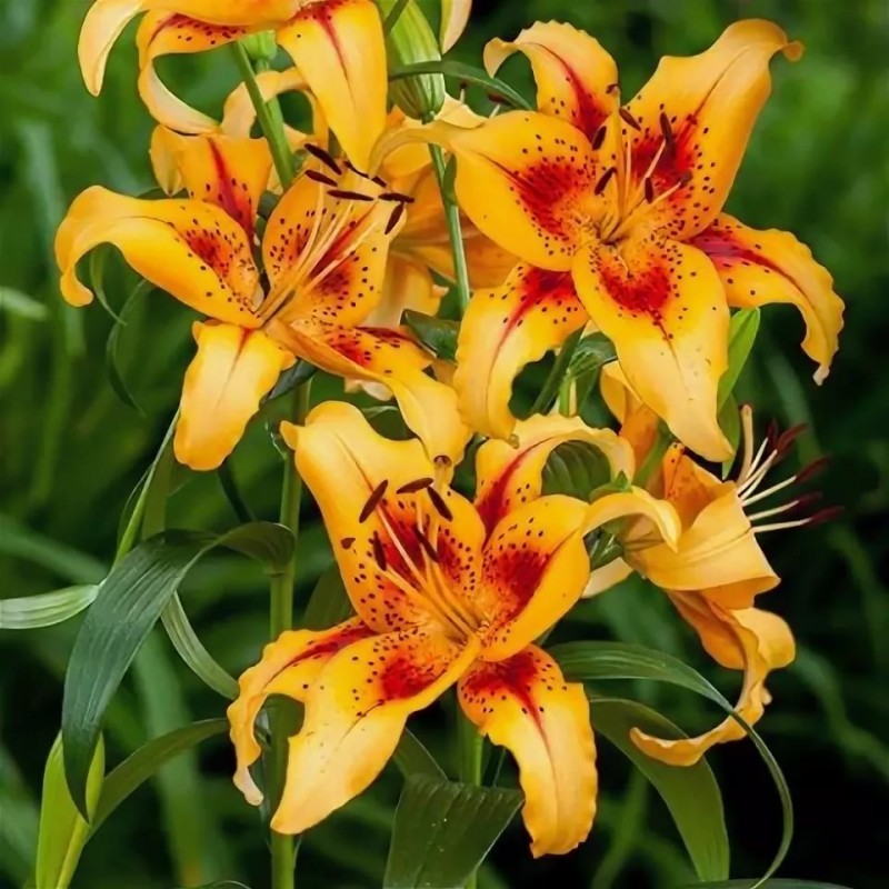 Окраска цветка : желто-оранжевая с красно-бордовым мазком в середине лепестка и коричневым крапом