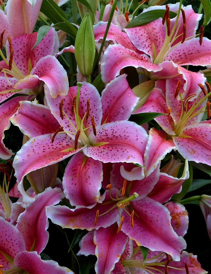 Окраска цветка : светло-розовый с темно-красной полосой и крапом,края белые
