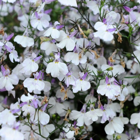 Лобелия ампельная регата лилак сплэш - это волшебное растение, которое привнесет неповторимую красоту и изысканность в ваш сад. Ее стебли, достигающие высоты 15-20 см, украшены нежными цветами сиренево-белого оттенка, создавая неповторимый летний акцент. Листья этой лобелии имеют форму сердца, что придает ей особый шарм и изящество.