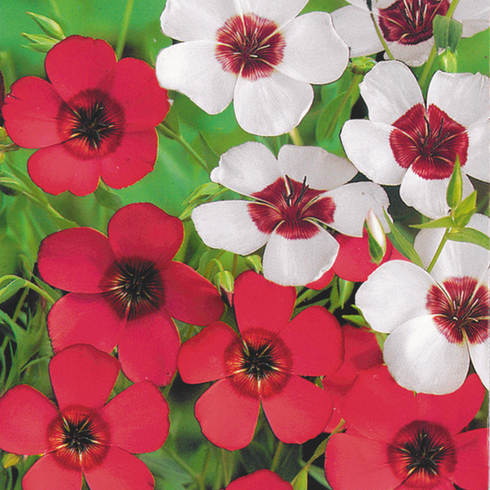 Лен крупноцветковый микс - это удивительное растение с неповторимым шармом и изысканным видом. Его стебель прочный и прямой, достигает высоты до 50 см, а цветки великолепны и разноцветны: голубые, красные, белые. Листья льна крупноцветкового микса имеют форму иглы, что делает его еще более привлекательным.
