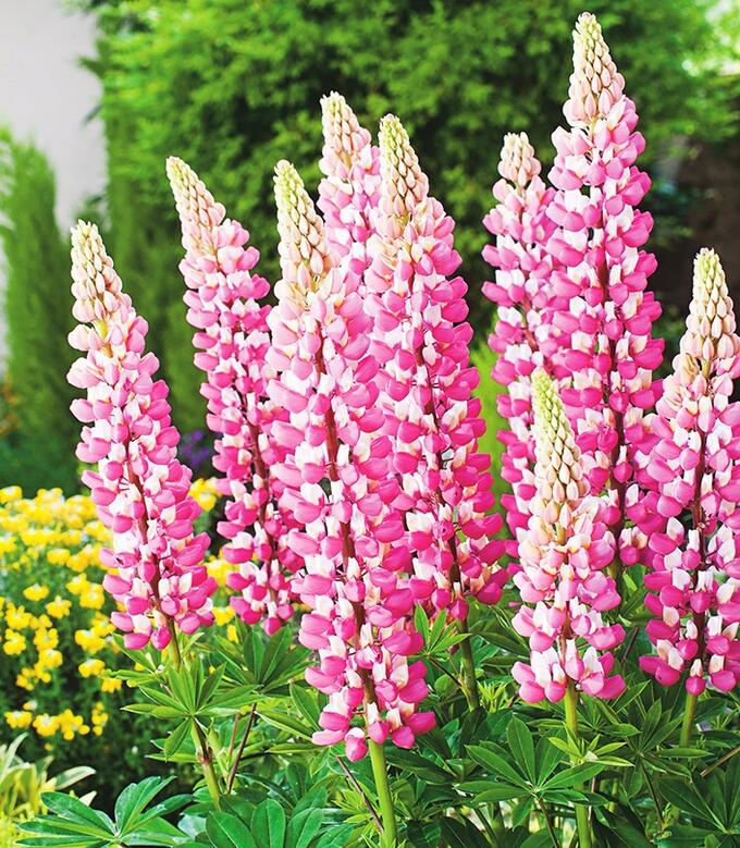 Семена люпина сорта Чателайн порадуют садоводов красивым цветением и простым уходом. В июне на растениях высотой около 120 см появляются пирамидально-колосовидные соцветия, состоящие из небольших цветков двойной розово-белой окраски.