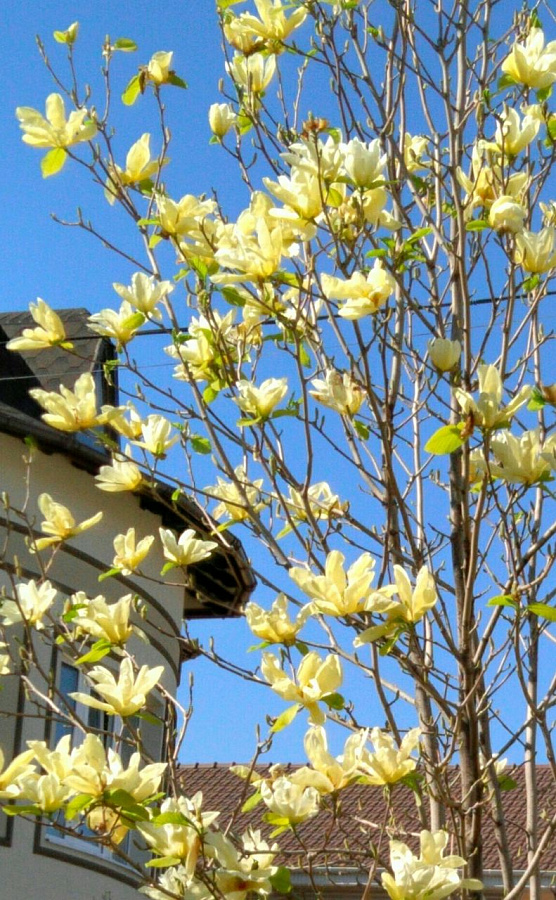 Саженцы Магнолии Еллоу Лантерн (Yellow Lantern) – быстрорастущий куст, который в весеннее время усыпан большими цветами. В саду смотрится необычно, ведь настолько крупные соцветия встречаются редко. Цветы по форме напоминают тюльпан, они распускаются на кончиках низко свисающих веток.