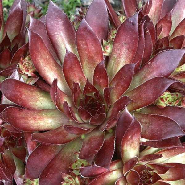 Рассада молодила Бронко (Bronco) имеет мясистые, опушенные железистыми волосками листики, которые собраны в густые многолистные розетки. Имеет компактный вид и вырастает около 5-10 см в высоту. Цветение вино-красного цвета припадает на июль-август. Достоинства молодила Бронко: