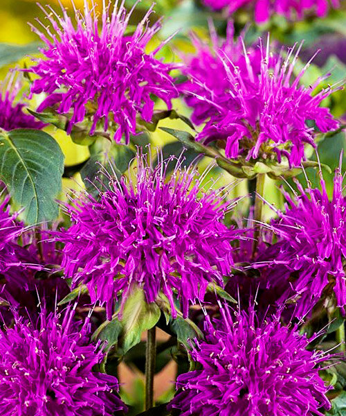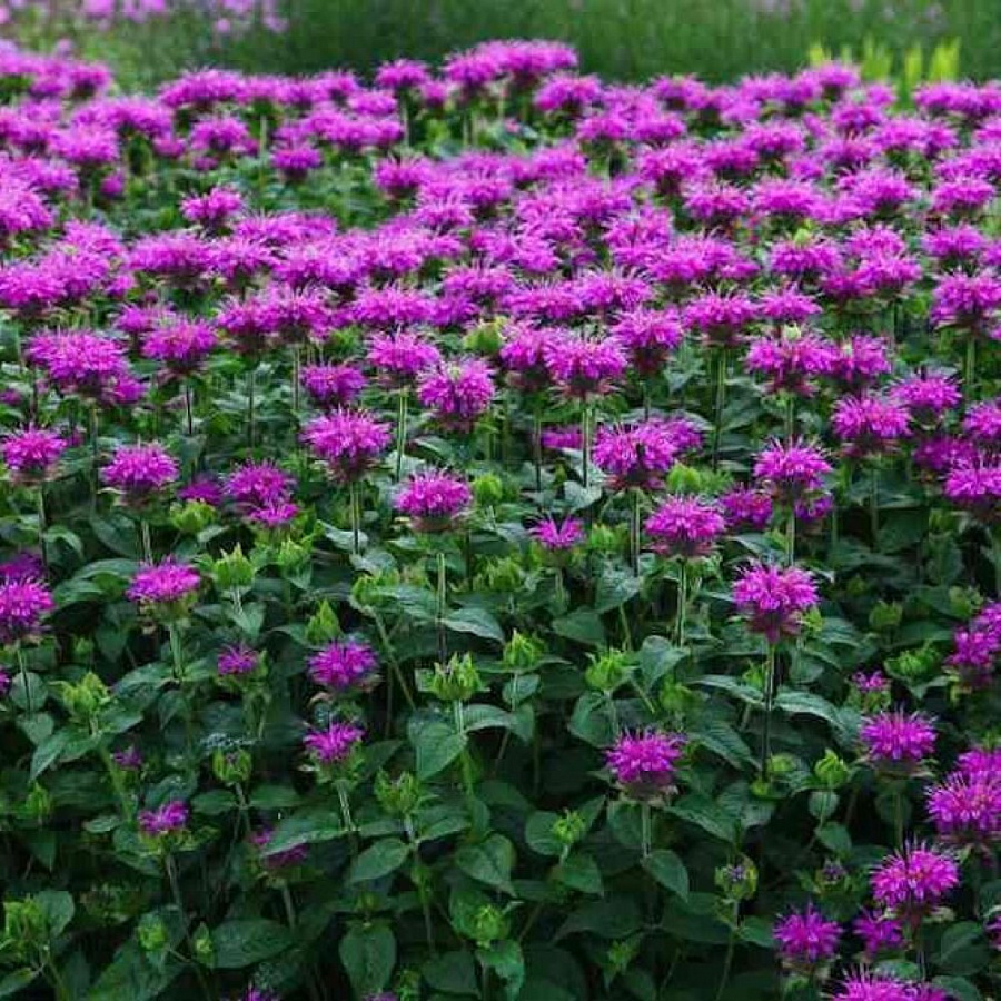 Саженцы Монарды гибридной Прейринахт (Monarda hybrida Preyrinakht) стоит приобрести для дополнения сада или газона яркими, контрастными каплями. Самоопыляемые цветы высотой до 45 сантиметров хорошо смотрятся в обрамляющих дорожки посадках и ярусных миксбордерах. Жесткие ланцетные листья, крепкие темно бордовые стволы и пурпурно-розовые цветки — идеально для центрального элемента букета. Сильный аромат привлекает на участок насекомых-опылителей, поэтому в огороде Монарда также пригодится, тем более она отличается совершенной неприхотливостью к составу почвы и не требует сложного ухода.